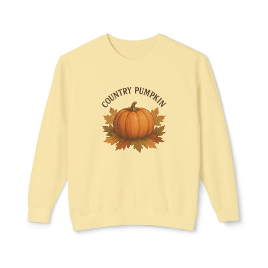 Country Pumpkin Unisex Lightweight Crewneck Sweatshirt, Fall Apparel, Autumn Fashion, Cozy Gift, Pumpkin Spice Lover