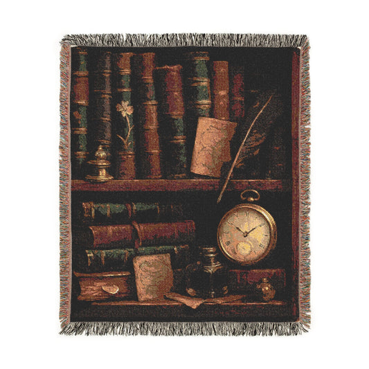 Victorian Bookshelf Woven Blanket, Cozy Throw Blanket, Home Decor, Warm Colors, Unique Gift