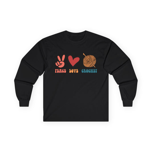 Peace Love Crochet long sleeve tee | Knitting yarn peace sign