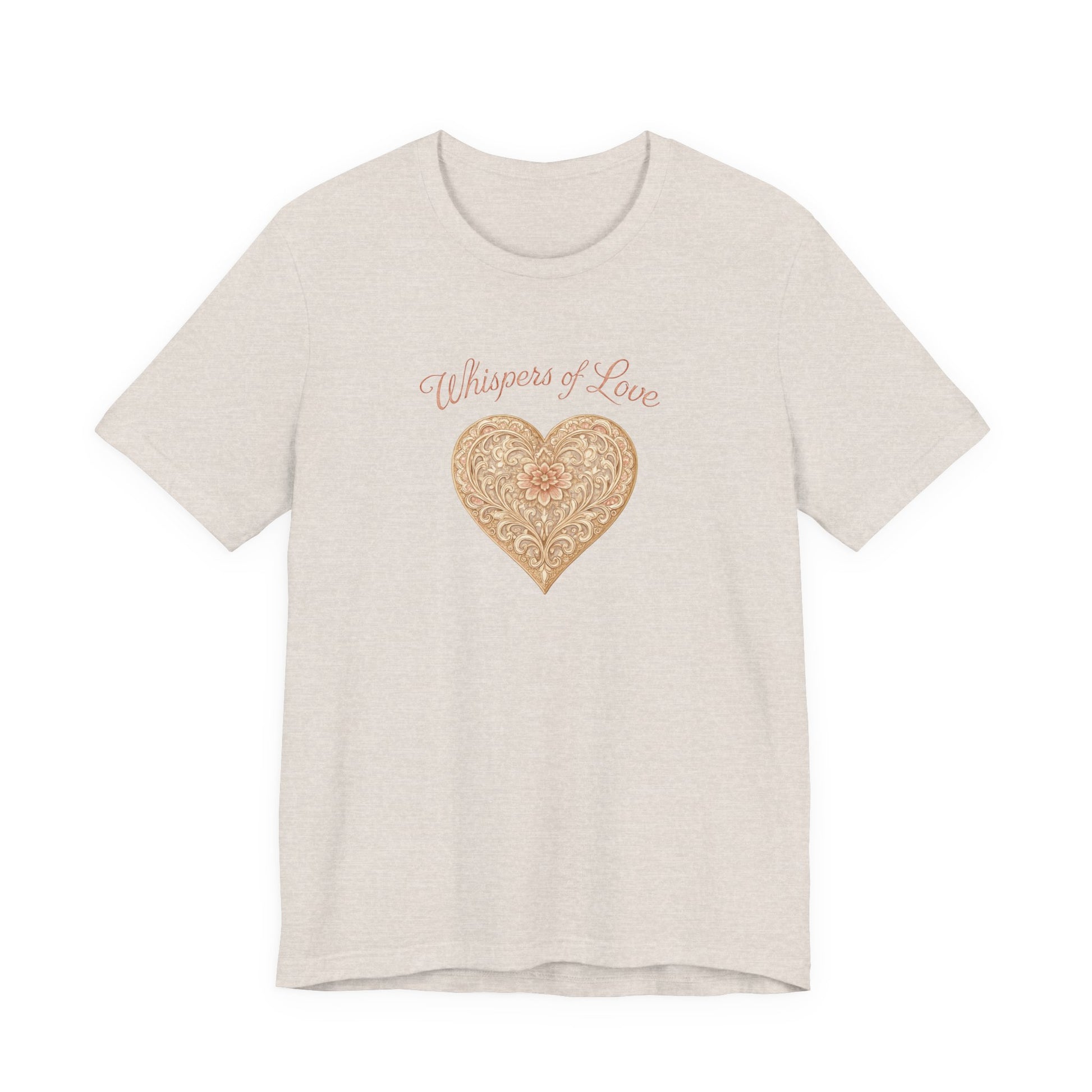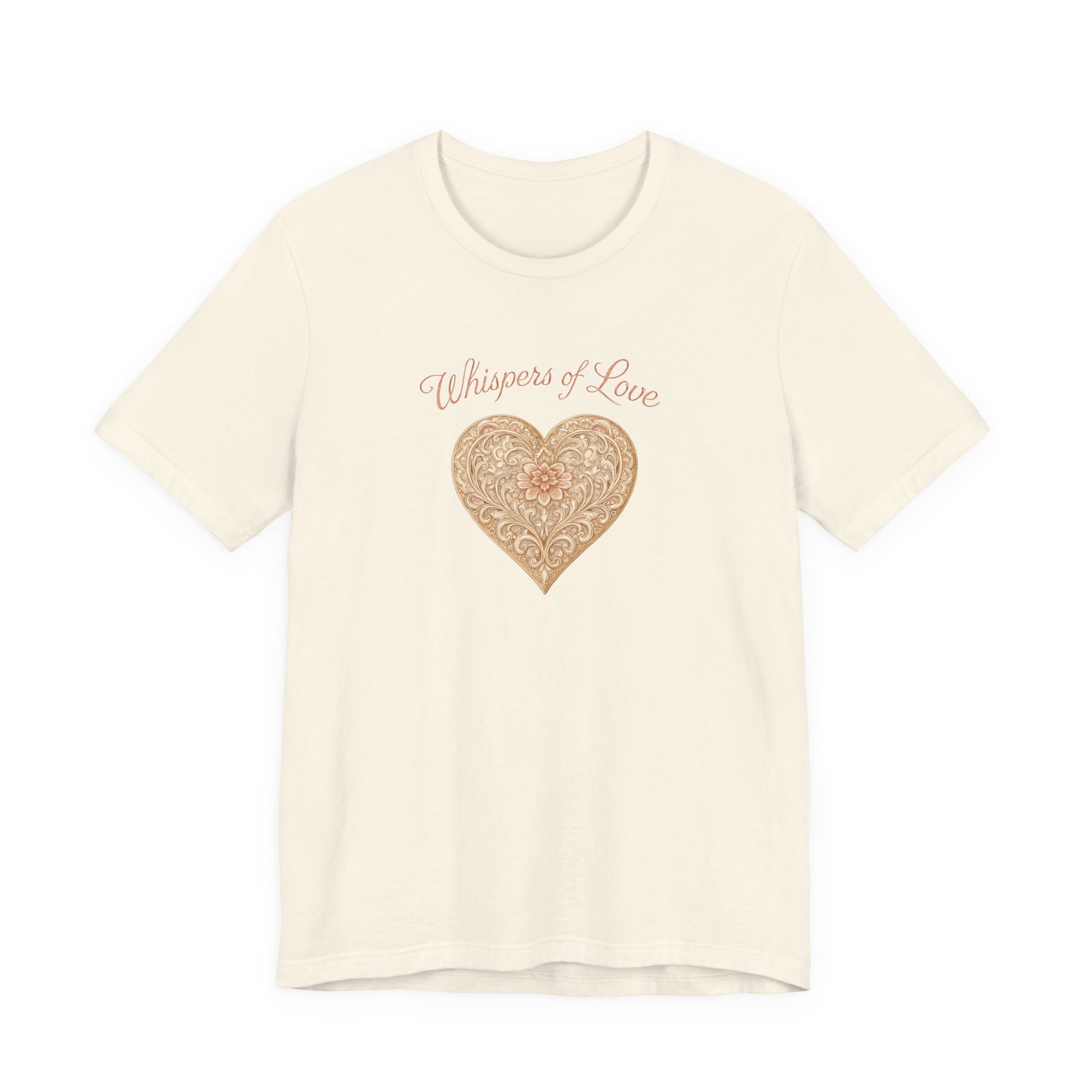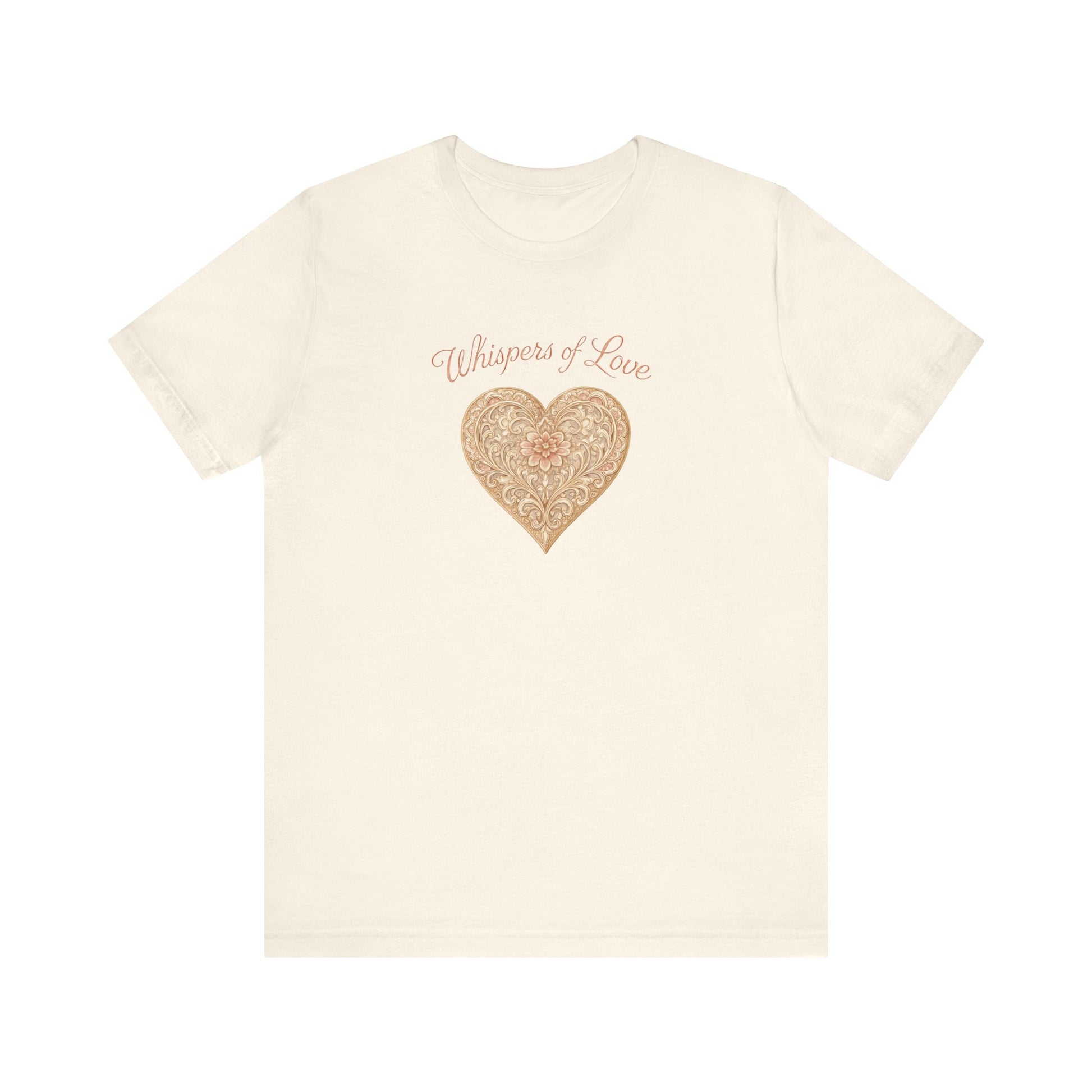 This is a classic unisex jersey short sleeve tee, made of soft cotton, that fits like a favorite. Featuring an ornate, vintage-inspired heart design, this soft tee will make you feel well-loved.
