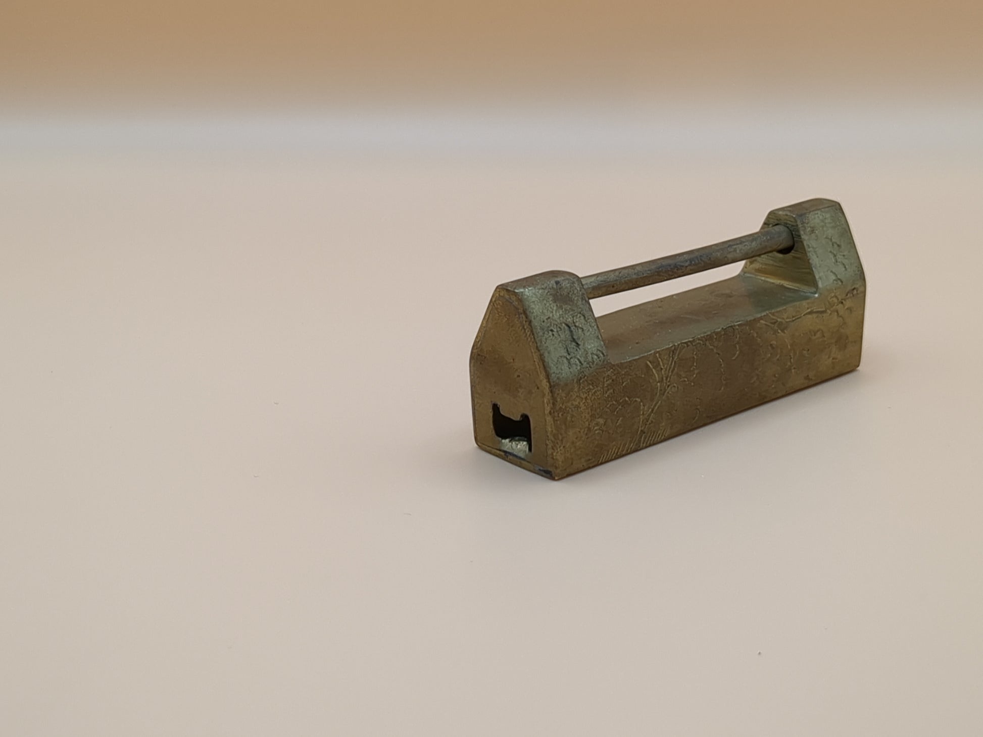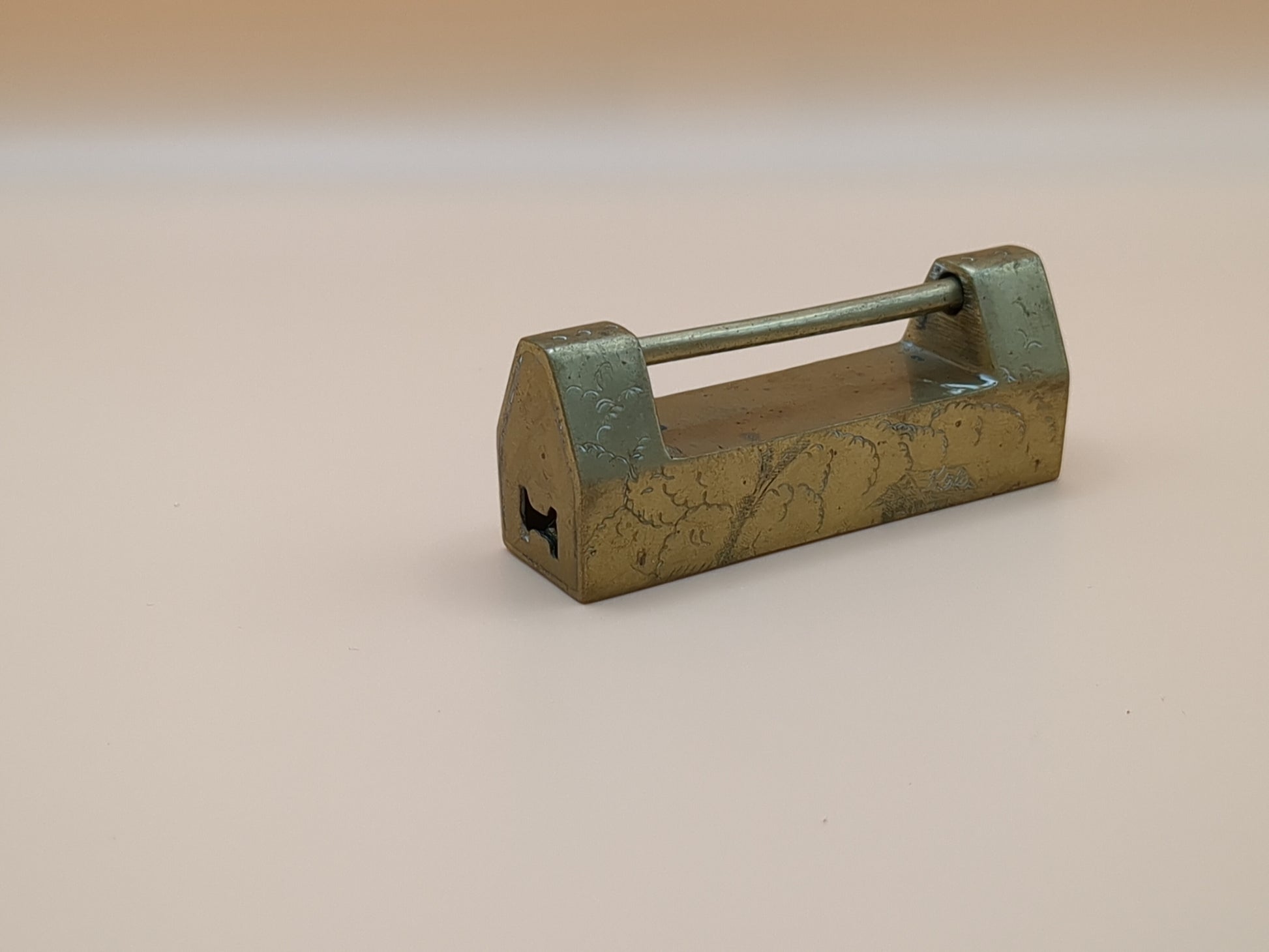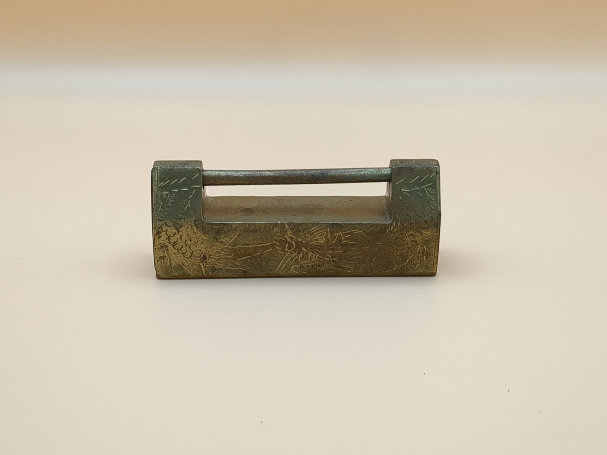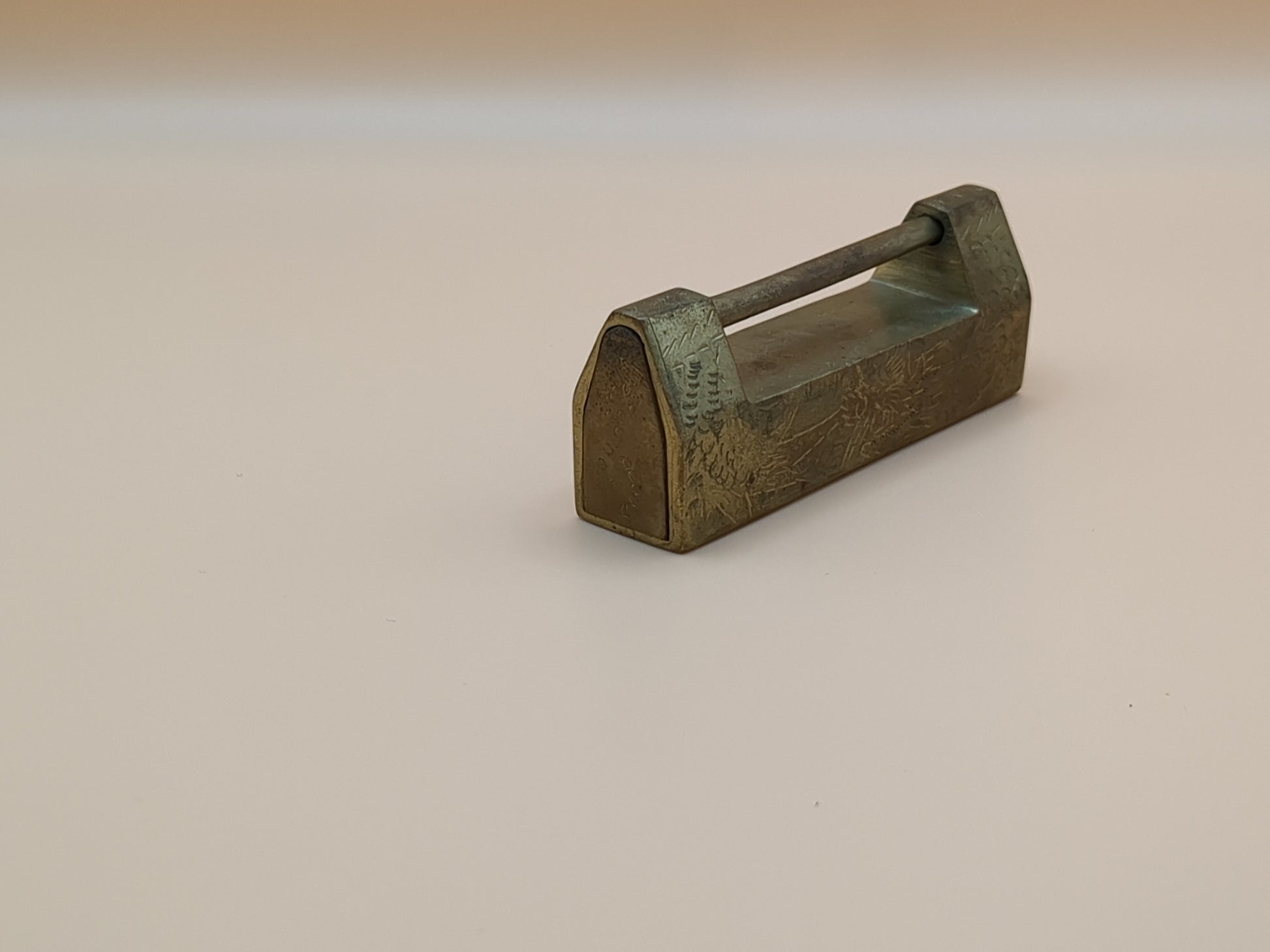 Vintage Asian Brass Padlock Set With Key - Engraved Brass - Lock - Paperweight